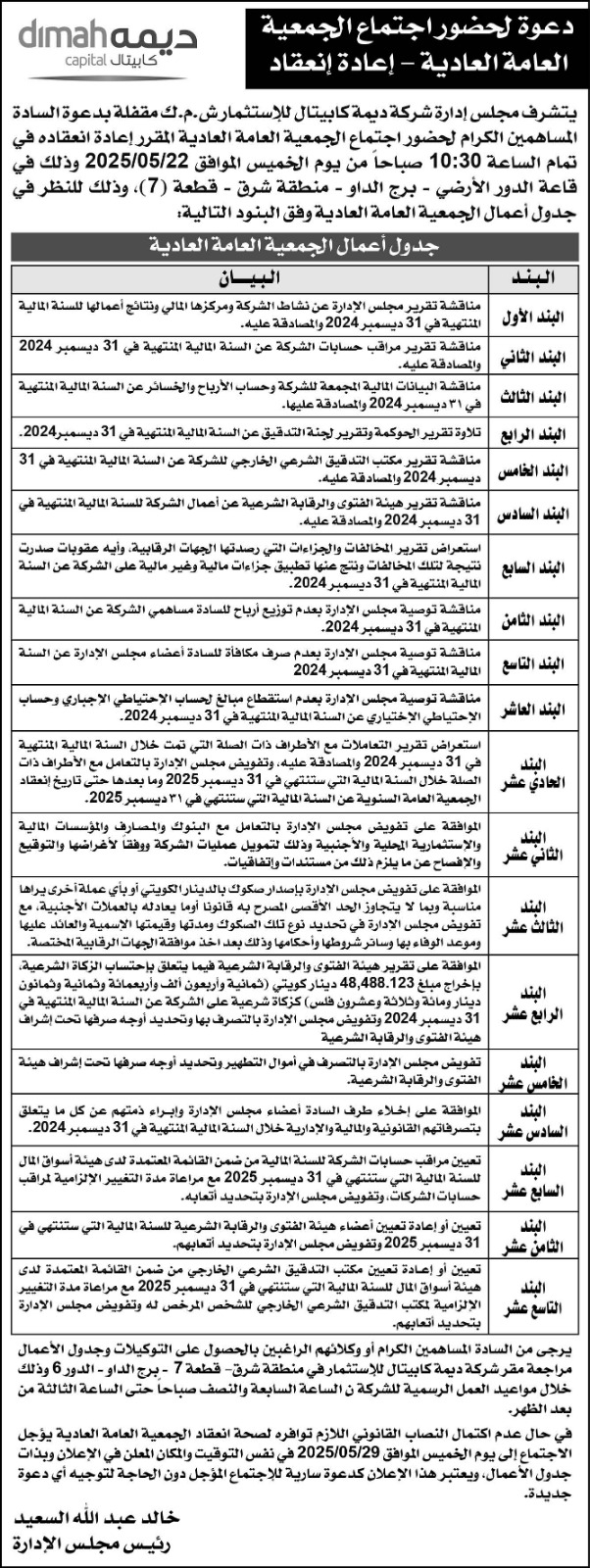 Invitation to attend the Ordinary General Meeting - Rescheduled Session